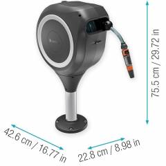 OTOMATİK GERİ SARMALI GARDENA TERAS HORTUMU KUTUSU ROLLUP M, ORTA BÜYÜKLÜKTEKİ BAHÇELER İÇİN İDEAL HORTUM SAKLAMA ALANIDIR VE DOĞRUDAN TERASA MONTE EDİLİR.