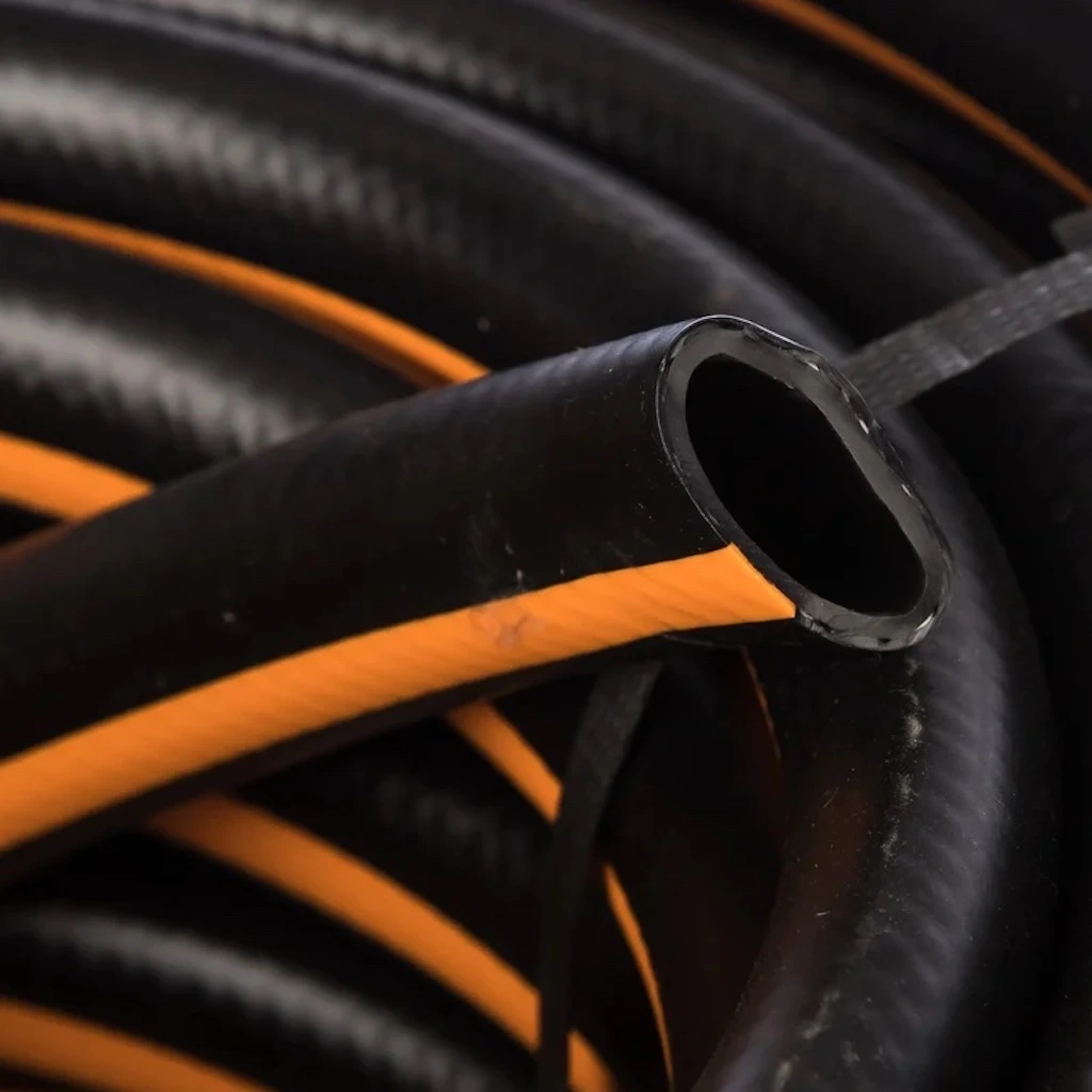 FİSKARS 1023653, PVC'DEN YAPILMIŞ VE FİTALAT İÇERMEYEN ÜÇ KATMANLI ZIRHLI BİR HORTUMDUR.
