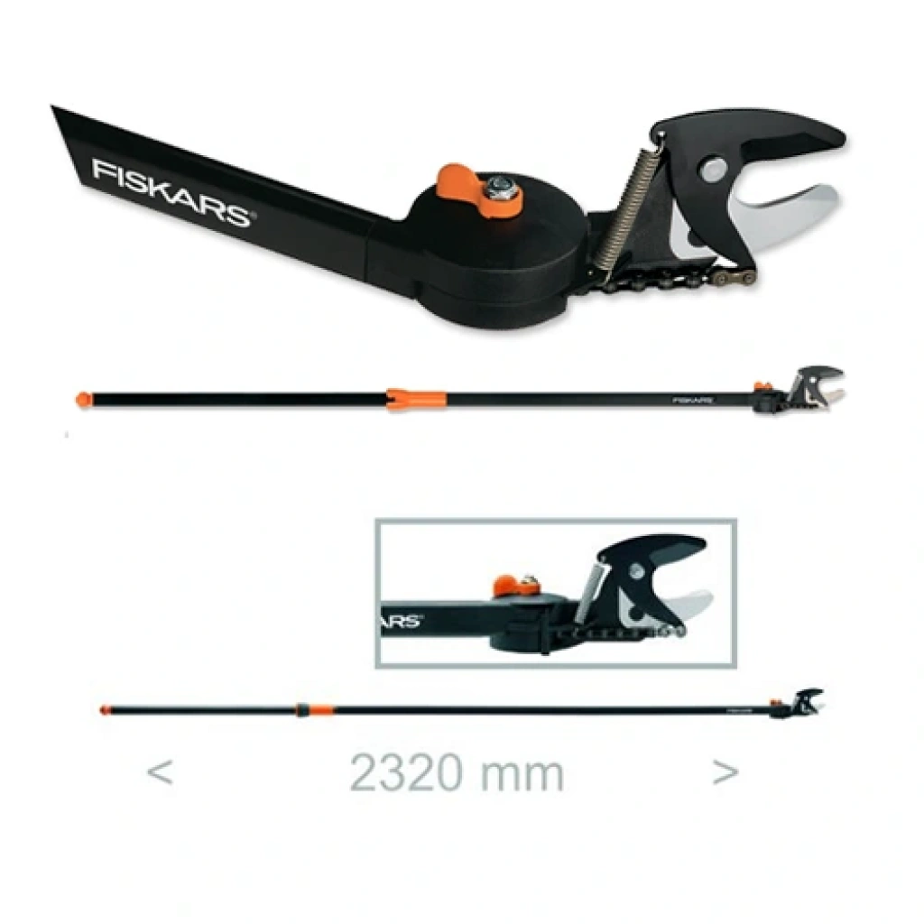 Fiskars 115390 Yüksek Dal Budama Makası 232 cm uzunluğunda ve 1140 gram ağırlığındadır.
