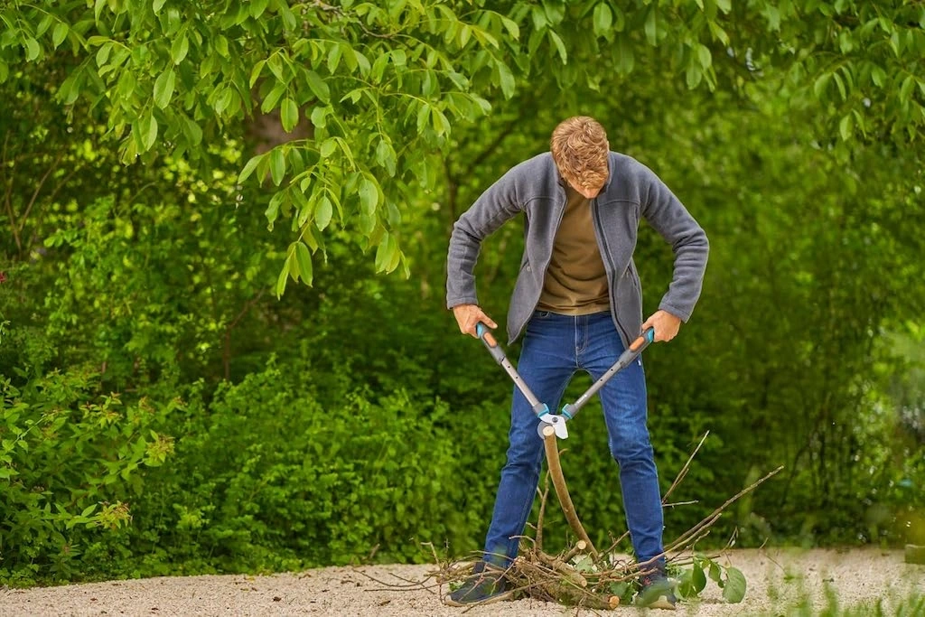TAZE AĞAÇ DALLARINI KESERKEN GÜÇLÜ KESME GÜCÜ VE KULLANICI ÜZERİNDEKİ YÜKÜ AZALTMAK İÇİN KALDIRAÇ KULLANIR.