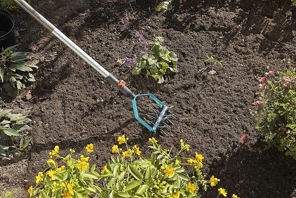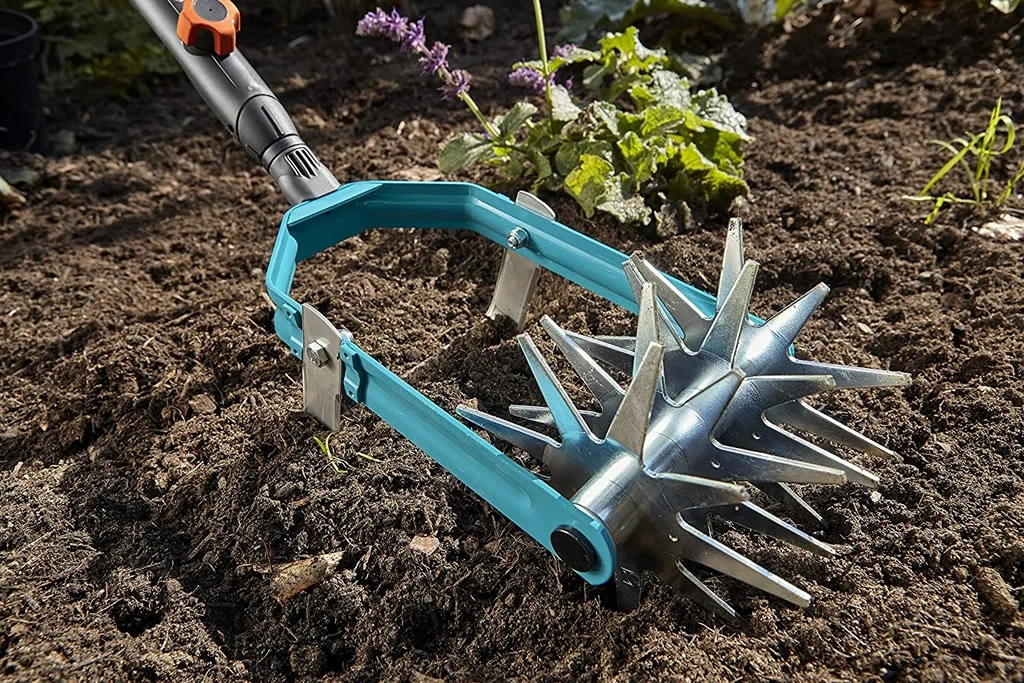 AYIKLAMA BIÇAĞINA SAHİP GARDENA COMBİSYSTEM STAR TİLLER, 14 CM'LİK BİR ÇALIŞMA GENİŞLİĞİNE SAHİPTİR