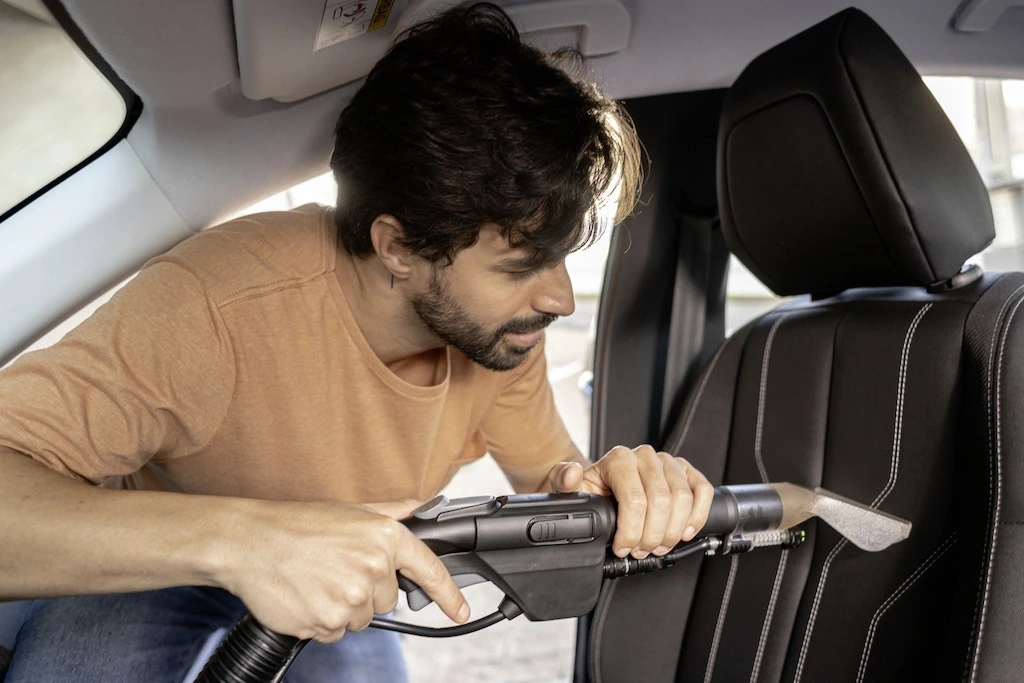TEMİZLİK SOLÜSYONU TEKSTİL LİFLERİNE DERİNLEMESİNE PÜSKÜRTÜLÜR VE KİR PARÇALARIYLA VAKUM YOLUYLA TOPLANIR.